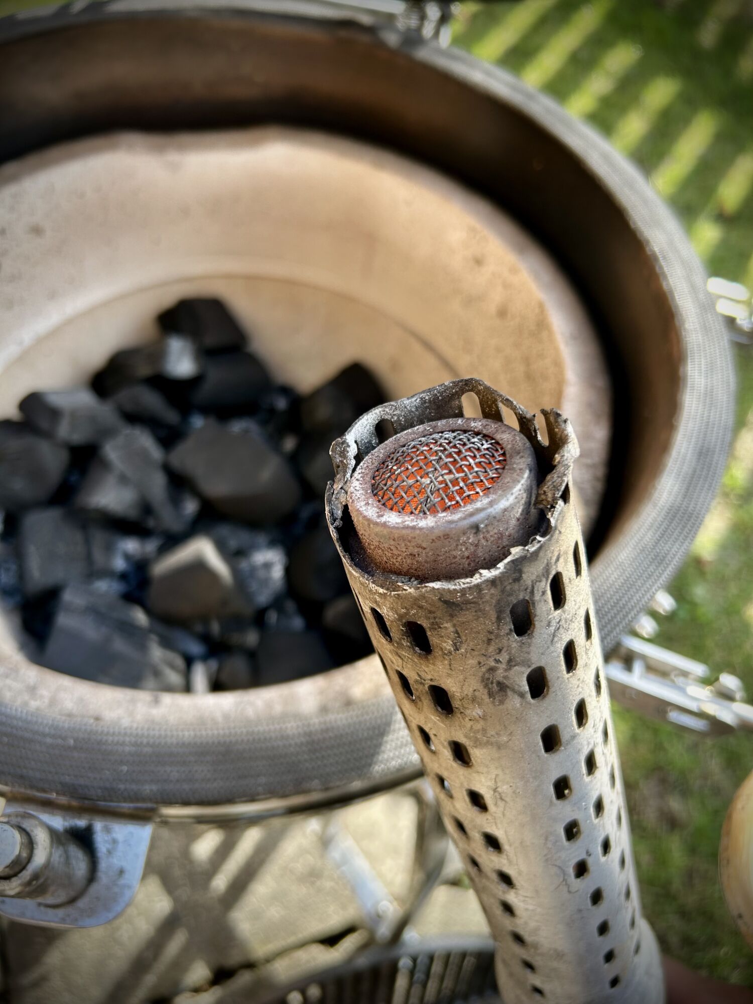- Pro dosažení určité teploty v Kamadu není zapotřebí, aby žhnulo všechno dřevěné uhlí. Při nízké teplotě hoří většinou jen 10 % paliva. Zbylé dřevěné uhlí lze použít příště.
