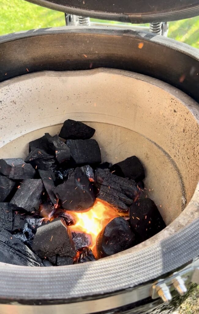 V keramických grilech Kamado ceramic doporučujeme používat jen dřevěné uhlí namísto briket. Grilování bude mnohem příjemnější.