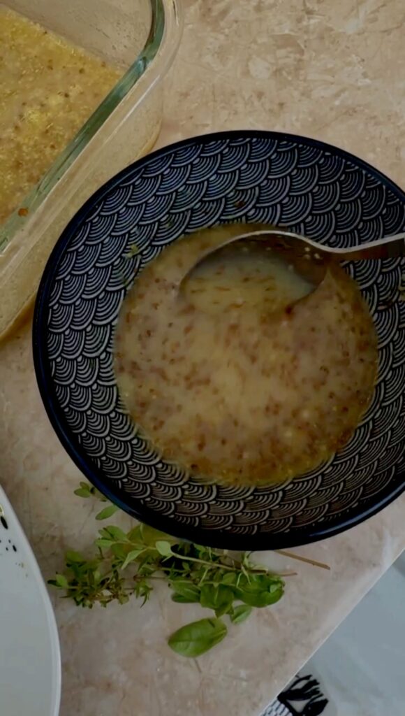 1. Filet lososa očistěte a osušte papírovou utěrkou. Připravte marinádu: smíchejte pomerančovou šťávu, med, hrubozrnnou hořčici a tymián. Maso osolte a opepřete a marinádou ho potřete ze všech stran. Nechte odležet minimálně 2 hodiny, ideálně přes noc, v lednici.