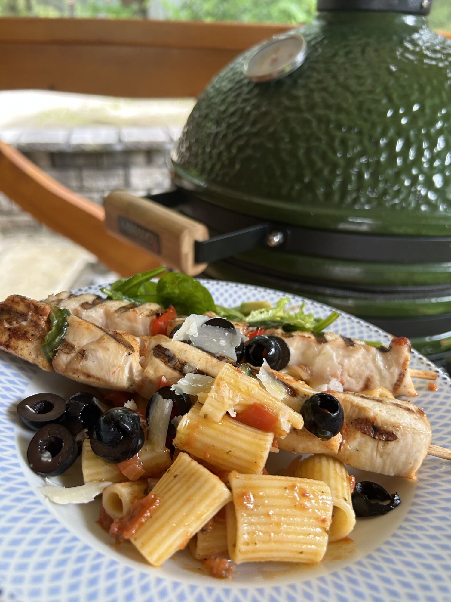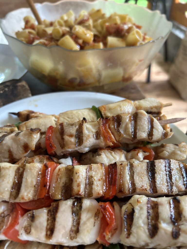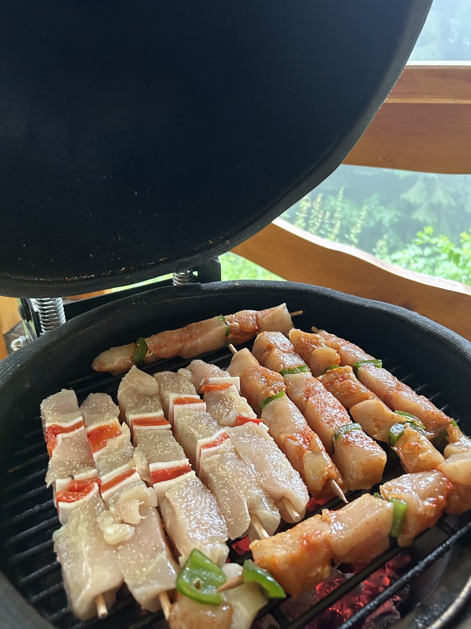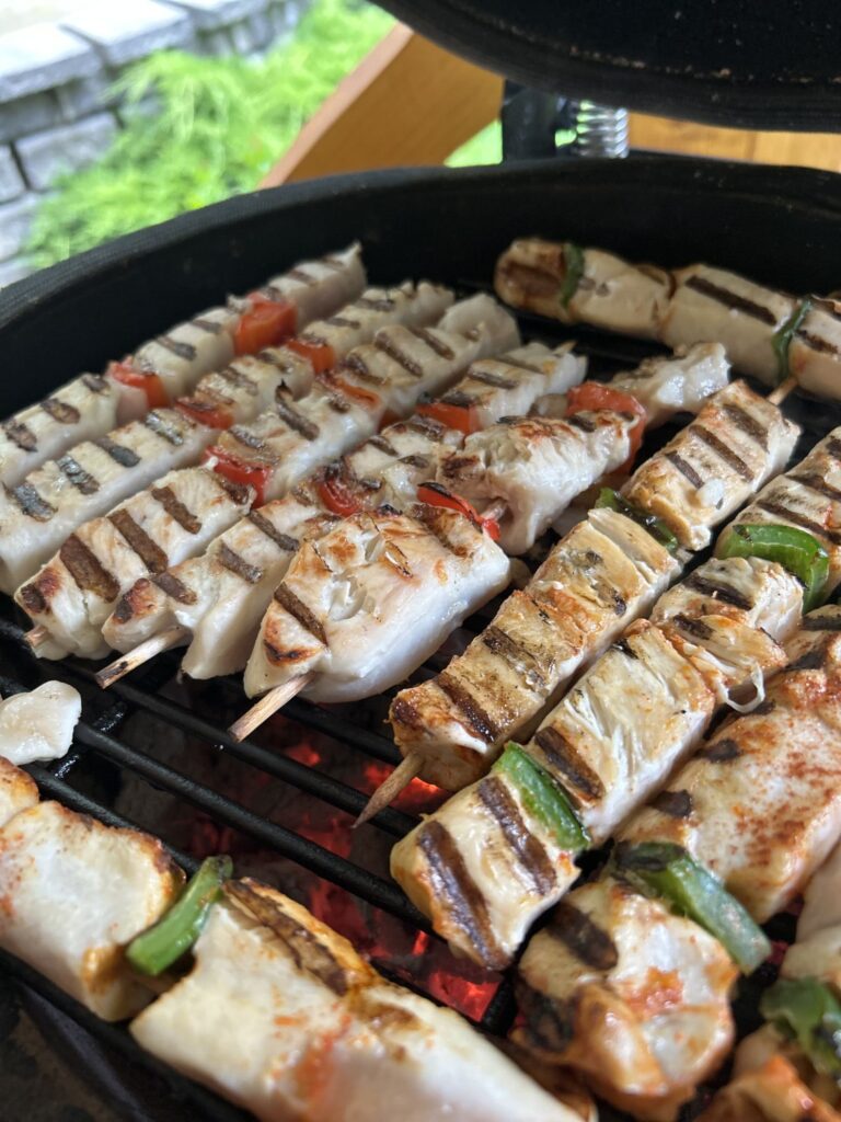 Šťavnaté kousky kuřecího masa napíchané na špízu spolu se sladkou paprikou, pomalu grilované nad žhavým uhlím. Díky otevřenému ohni získává maso jemně kouřovou vůni, zatímco paprika se lehce karamelizuje a dodává přirozenou sladkost. Harmonická kombinace jednoduchých surovin, kde vyniká čistá chuť ohně a poctivé grilování.