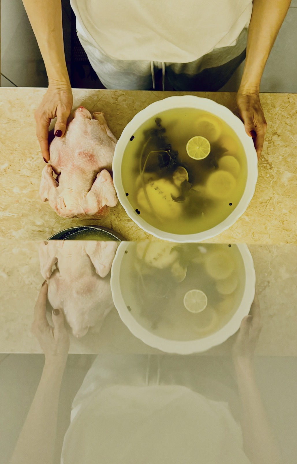 Očištěné kuře v celku vložte do těsně uzavíratelné nádoby a zalijte vychladlým nálevem tak, aby bylo celé ponořené. Uložte do lednice a nechte marinovat 24 hodin.