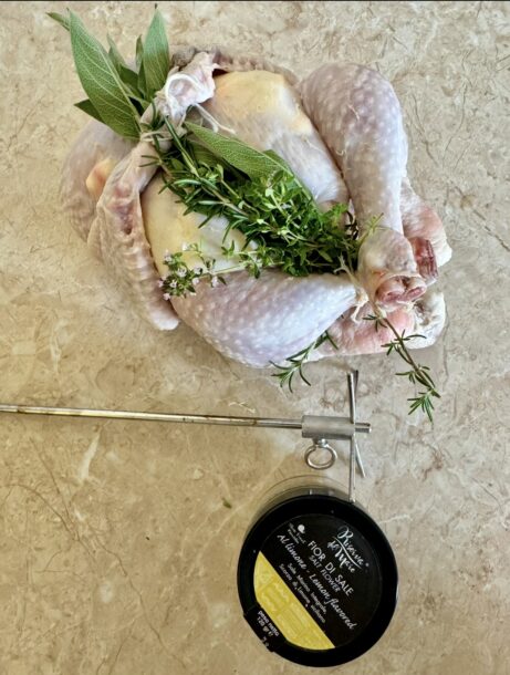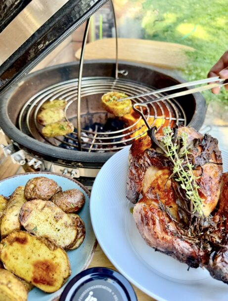 TIP: Máte-li po ruce více čerstvých bylinek, vložte je nejen dovnitř kuřete, ale i do jeho „náruče“. Pro ještě výraznější chuť si můžete připravit pastu z másla, citronové soli a bylinek a kuře jí během grilování potírat.