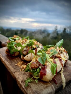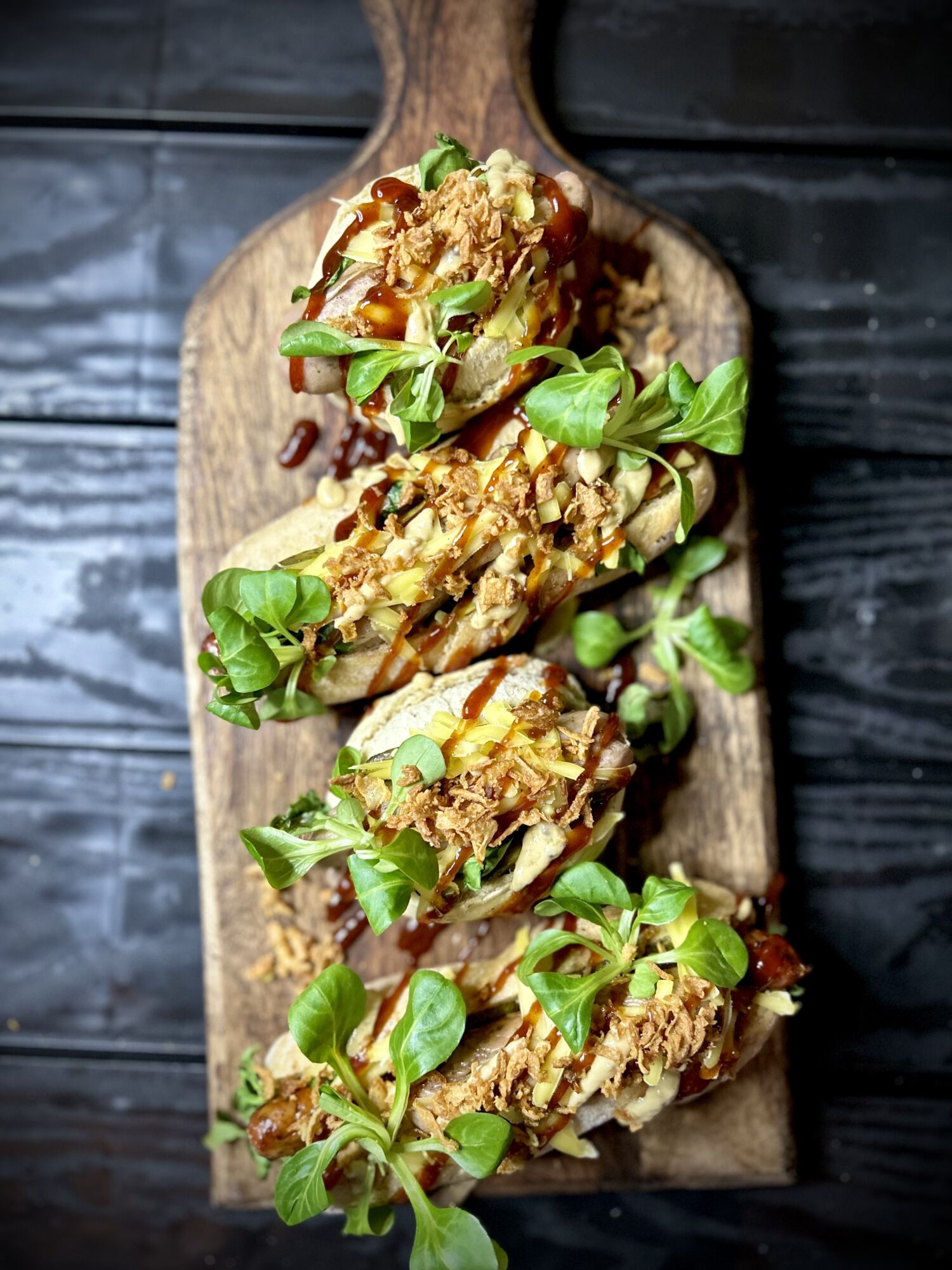Křupavá rozpékaná bageta z grilu, šťavnatá kvalitní klobása ve stylu bavorské a vůně ohně v každém soustu. Jednoduchý, poctivý hot dog, který stojí na chuti masa a perfektním opečení.