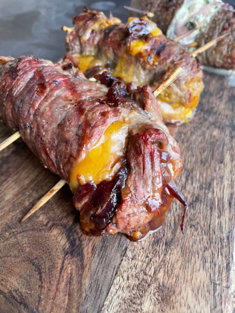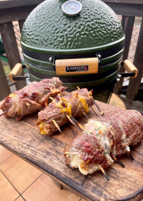 Tato šťavnatá hovězí roláda plněná cheddarem, mozzarellou a pršutem je ideální volba pro všechny milovníky kombinace grilovaného masa a sýrů. Rychlý a chutný recept, který se hodí na každou grilovačku.