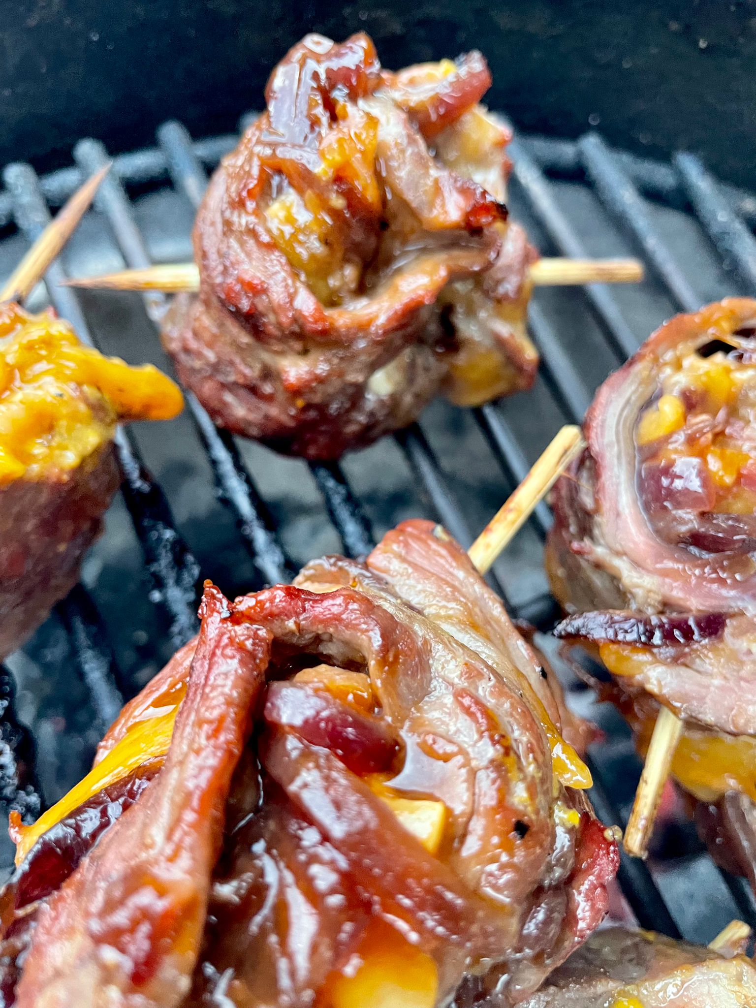 Gril rozehřejte na 180 °C a vložte rolády. Nejprve je zprudka opečte ze všech stran, aby se maso zatáhlo. Poté gril zavřete a nechte rolády ještě asi 10 minut dojít. Hotové rolády rozřízněte a nechte krátce odpočinout. Podávejte s pečenými bramborami nebo grilovanou BBQ zeleninou. Přejeme dobrou chuť.