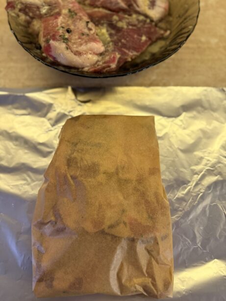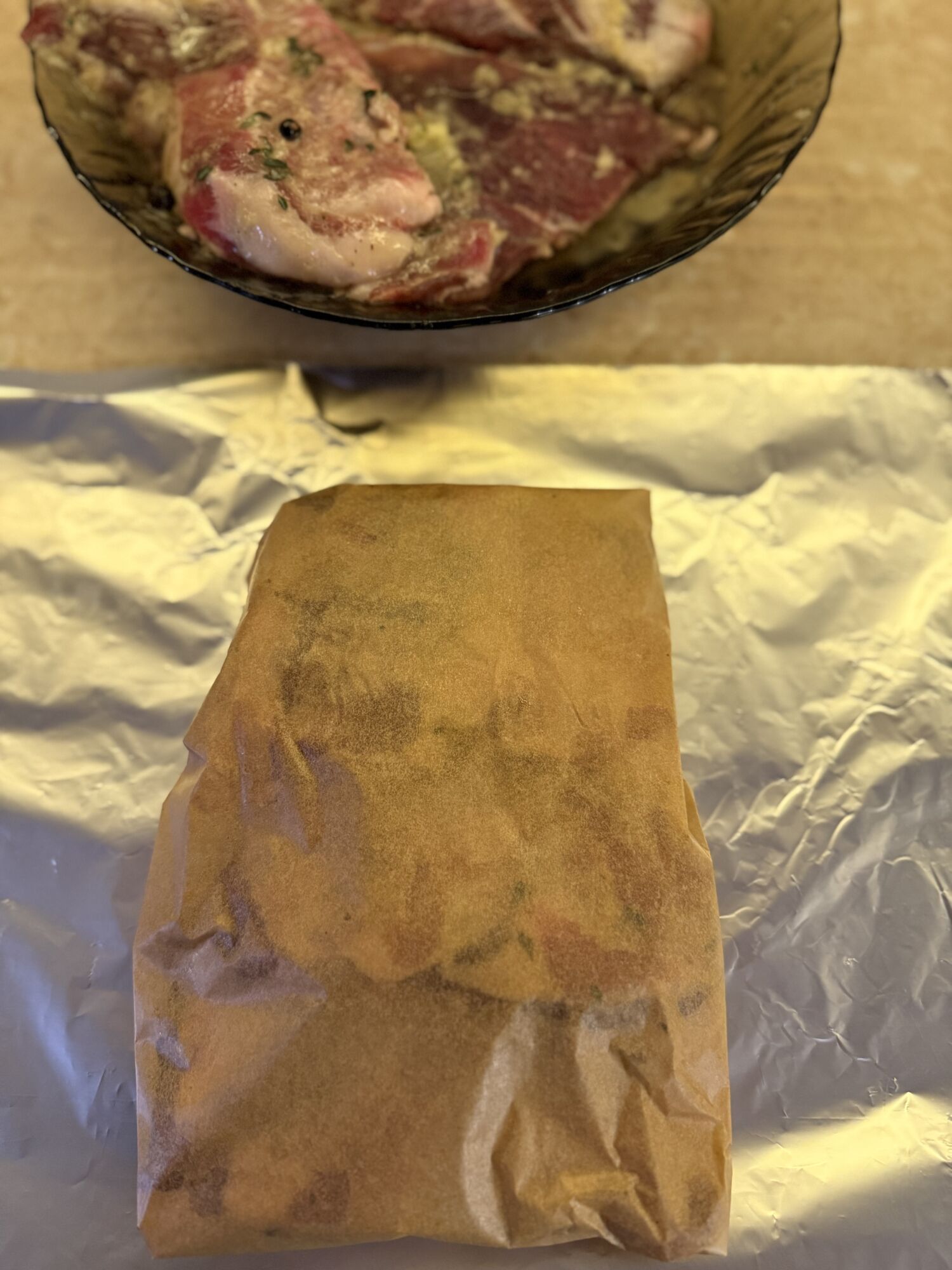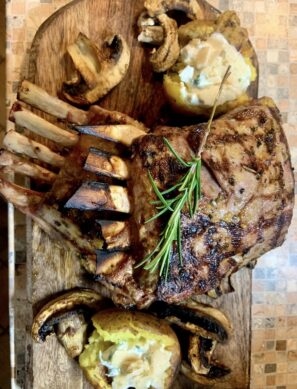 Šťavnatá kančí žebra pečená v pečicím papíře a alobalu na prudkém ohni, díky čemuž zůstávají křehká a dokonale propečená. Provoněná medem, česnekem a čerstvým tymiánem, získávají bohatou sladko-pikantní chuť a jemné kouřové aroma.