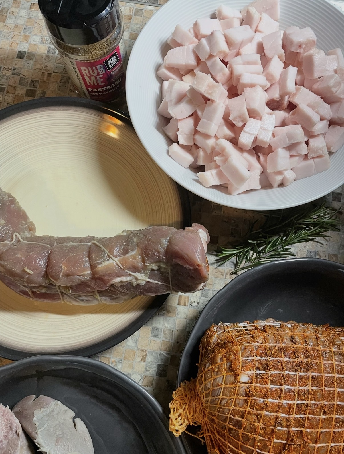 Maso vyndejte z lednice a nechte přibližně 3 hodiny odležet při pokojové teplotě. Do středu panenky vložte čabajku v celku a maso kolem ní pevně zaviňte tak, aby nikde nevyčnívala. Celou roládu pevně svažte potravinovým provázkem.