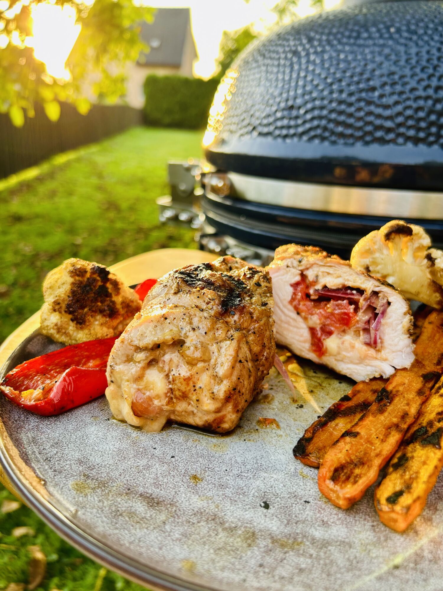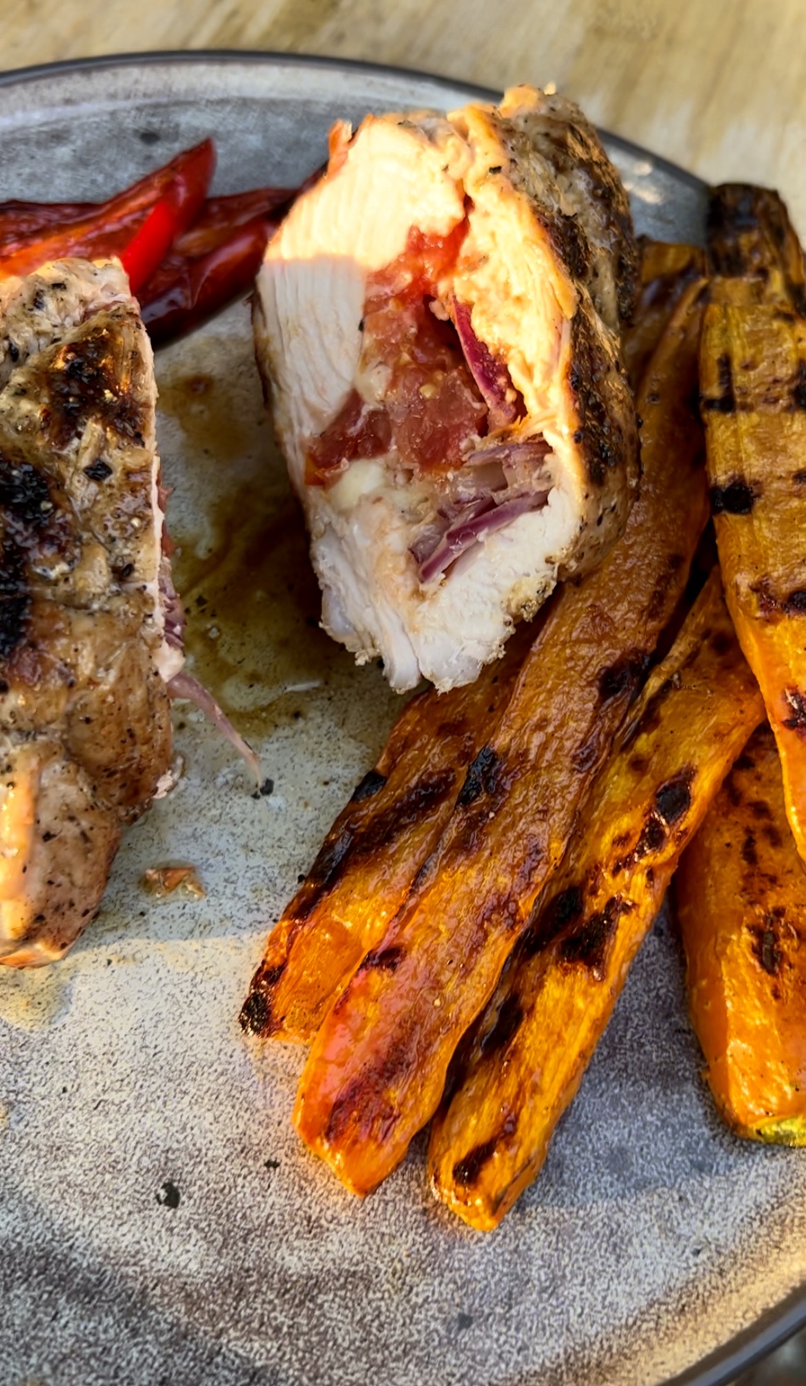 Plněné krůtí prso na grilu – jemné maso s pestrou náplní