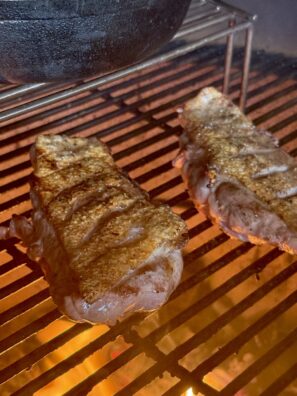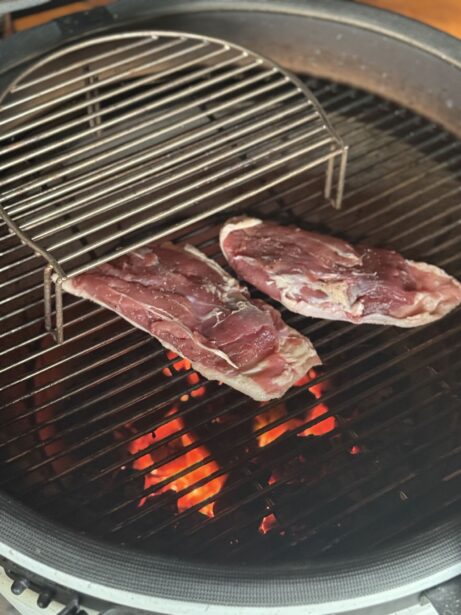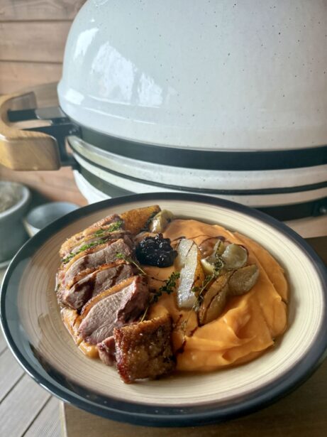 Kachní prsa vložte do litiny s ovocem na přídavný rošt a nechte 10 minut přikryté pod alobalem dopéct. Po vytažení z grilu nechte ještě dalších 10 minut odpočinout. Maso bude krásně voňavé a křehké. Přejeme dobrou chuť.