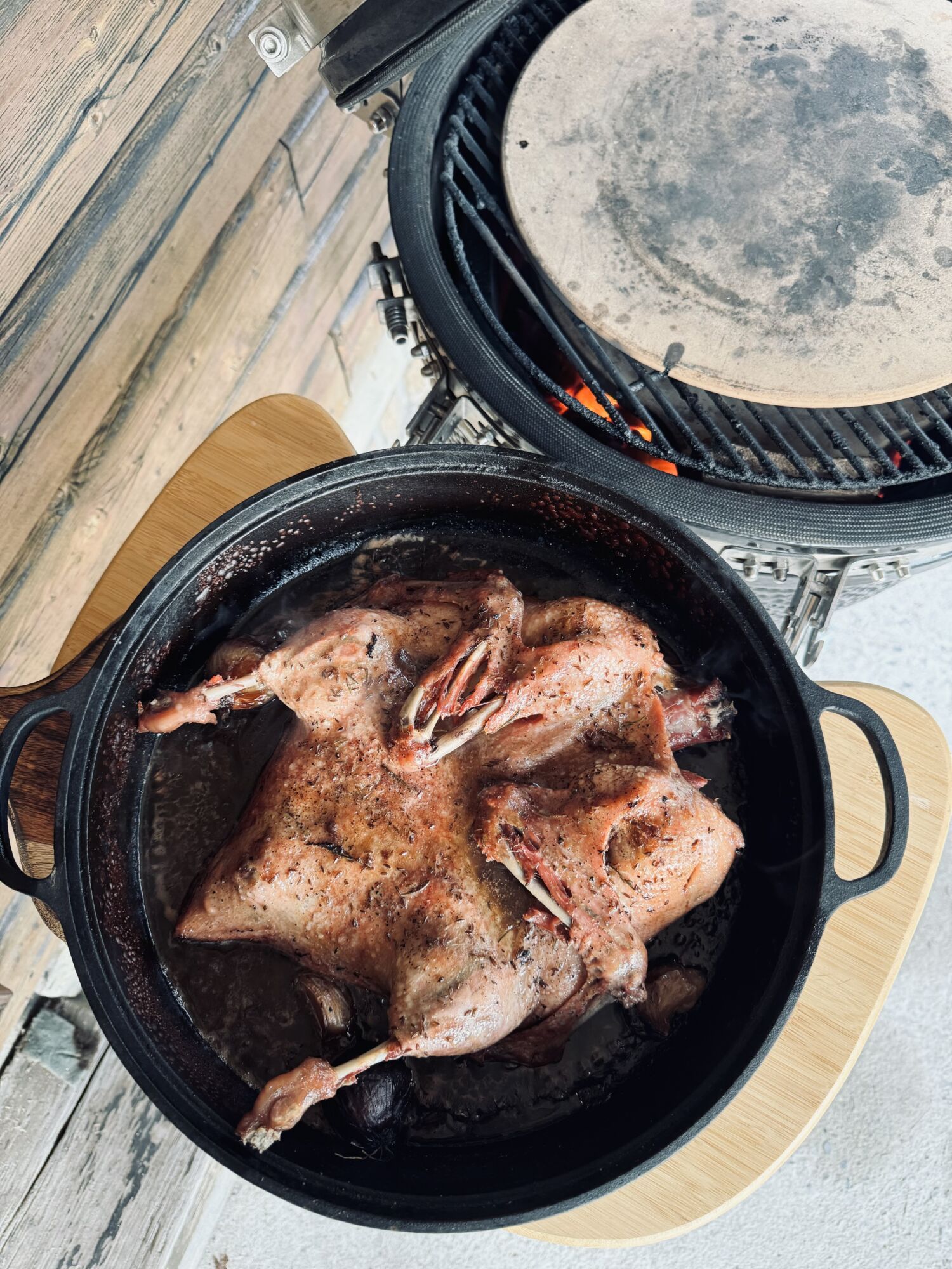 Hotovou husu vyjmeme z grilu, lehce ji zakryjeme alobalem (tak, aby mohla „dýchat“) a necháme 10 minut odpočinout. Přejeme dobrou chuť.