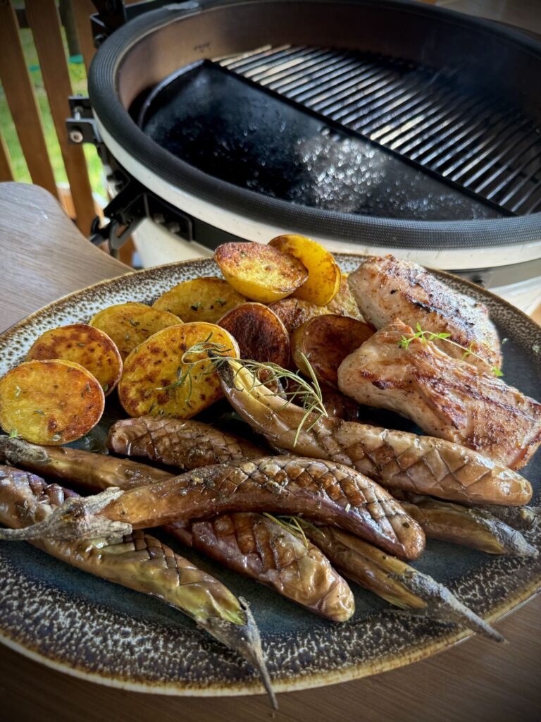 Keramický gril dává zelenině prostor vyniknout. Díky sálavému teplu a přirozené vlhkosti se zelenina pomalu propéká, lehce karamelizuje a získává elegantní kouřový tón. Pár kapek kvalitního oleje, špetka soli a trpělivost promění obyčejnou zeleninu v plnohodnotný chod, který dokonale doplní maso a často si řekne o pozornost sám.